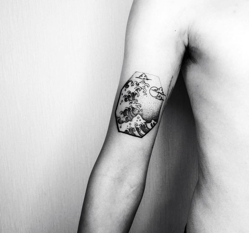 当前位置: 首页 >北京市纹身店-北京和刺纹身艺术工作室纹身图案>水浪小图纹身图片_成品手臂欧美传统清新静物纹身图案