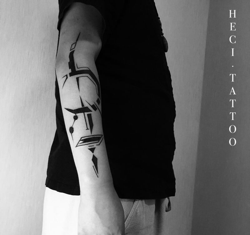 无题纹身图片_成品手臂欧美几何图腾纹身图案