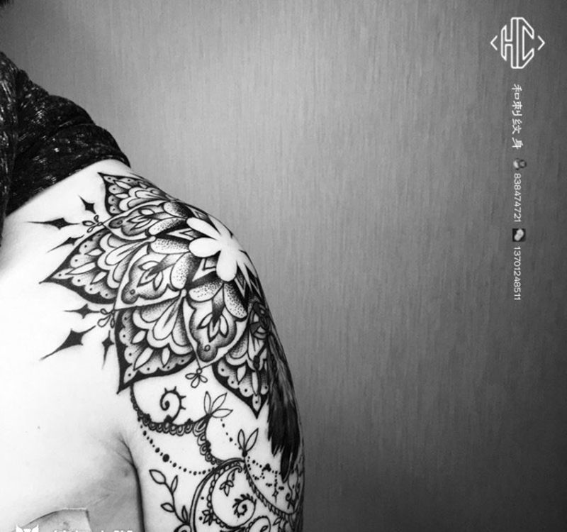 • 纹身吧推荐的披肩图腾半胛纹身图案作品展示