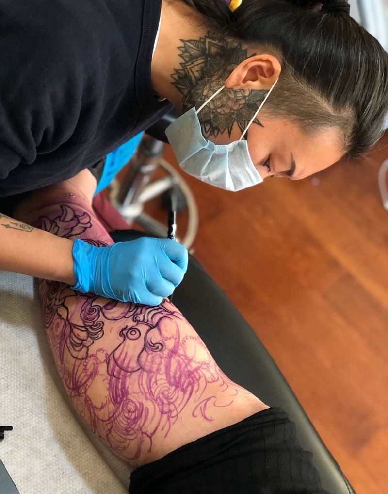• T网红王老大花腿龙纹身图片_腿部新传统纹身图案