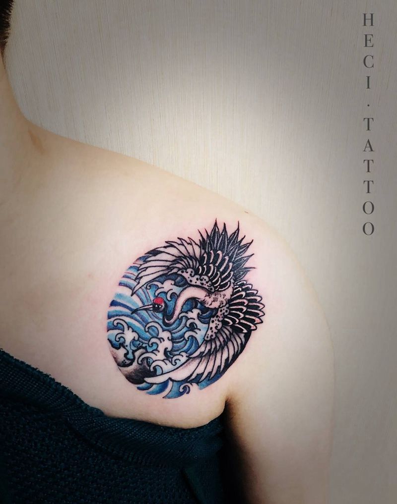 当前位置: 首页 >北京市纹身店-北京和刺纹身艺术工作室纹身图案>鹤纹身图片_成品肩部传统清新纹身图案