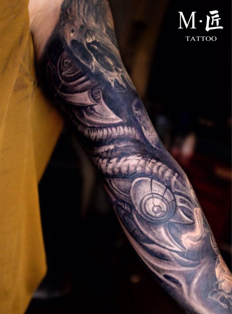 当前位置: 首页 >北京市纹身店-M·匠刺青坊纹身图案>机械纹身图片_手臂欧美写实黑灰写实纹身图案