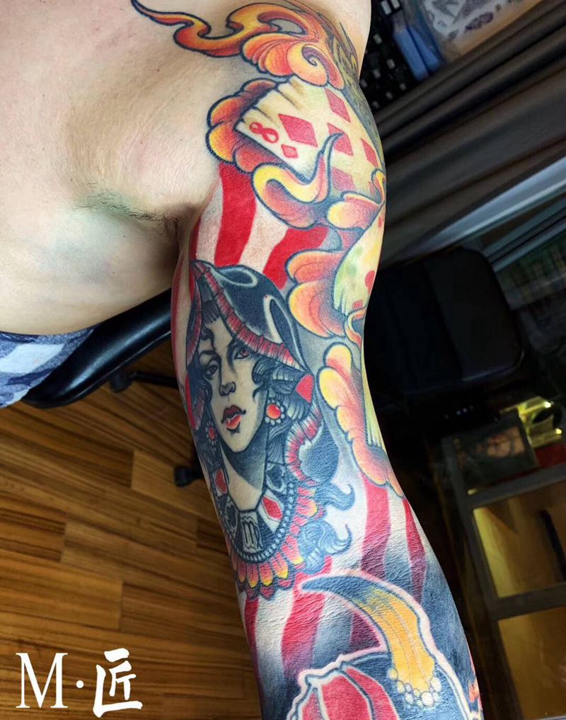当前位置: 首页 >北京市纹身店-M·匠刺青坊纹身图案>花臂填空纹身图片_肩部手臂欧美写实New School花臂填空纹身图案