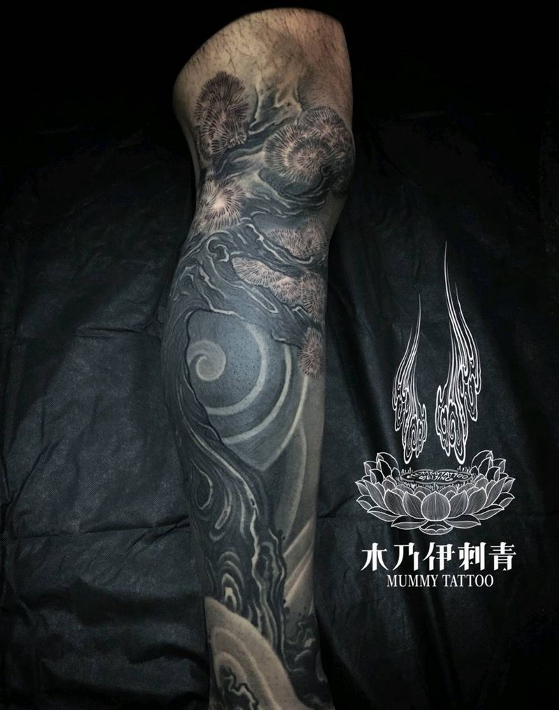 • T网红王老大花腿龙纹身图片_腿部新传统纹身图案