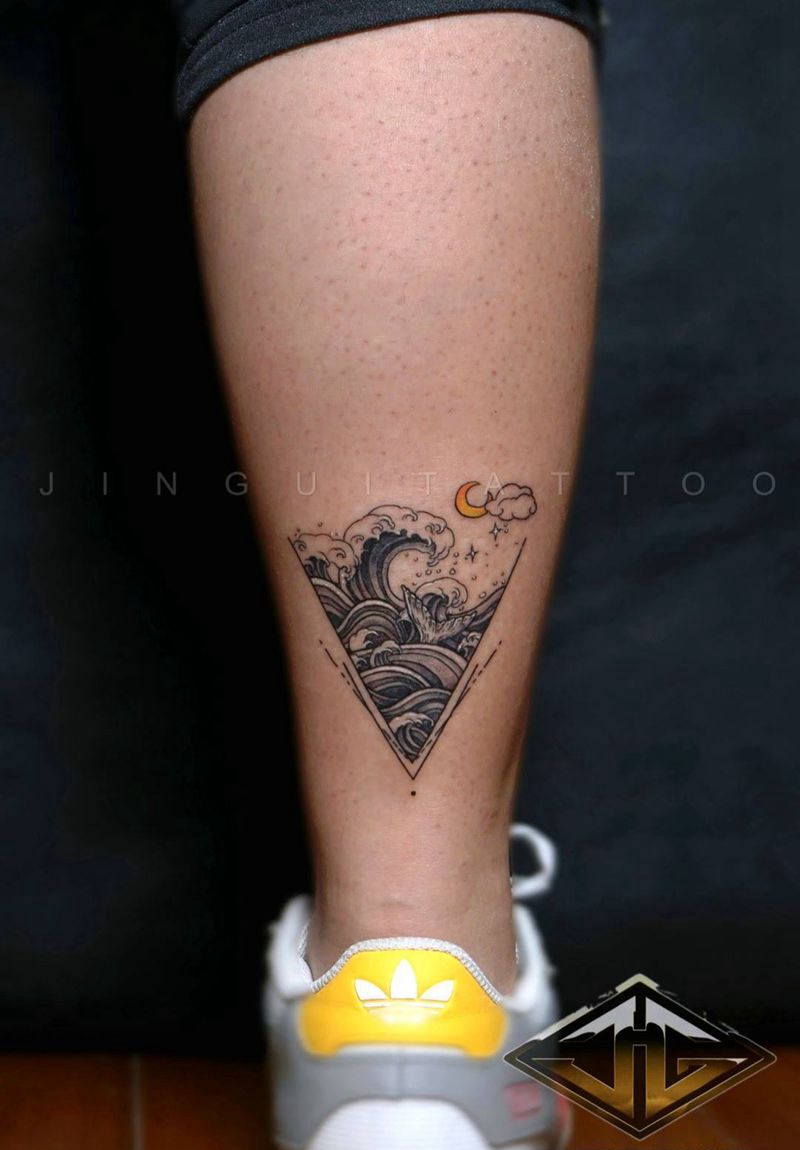 • T网红王老大花腿龙纹身图片_腿部新传统纹身图案