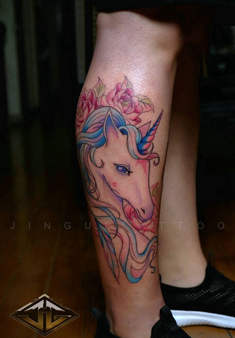 • T网红王老大花腿龙纹身图片_腿部新传统纹身图案