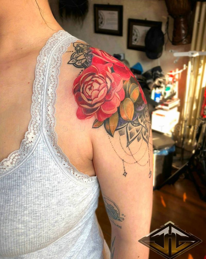 • 女性大花胸纹身_43张霸气漂亮的女性大花胸纹身图案作品