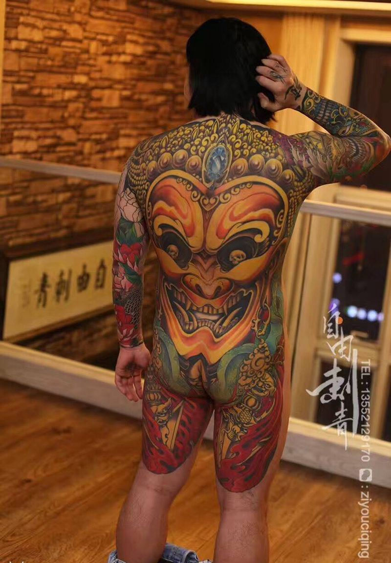 当前位置: 首页 >北京市纹身店-北京自由刺青纹身店纹身图案>满背面具纹身作品纹身图片_成品背部传统鬼神原创纹身图案