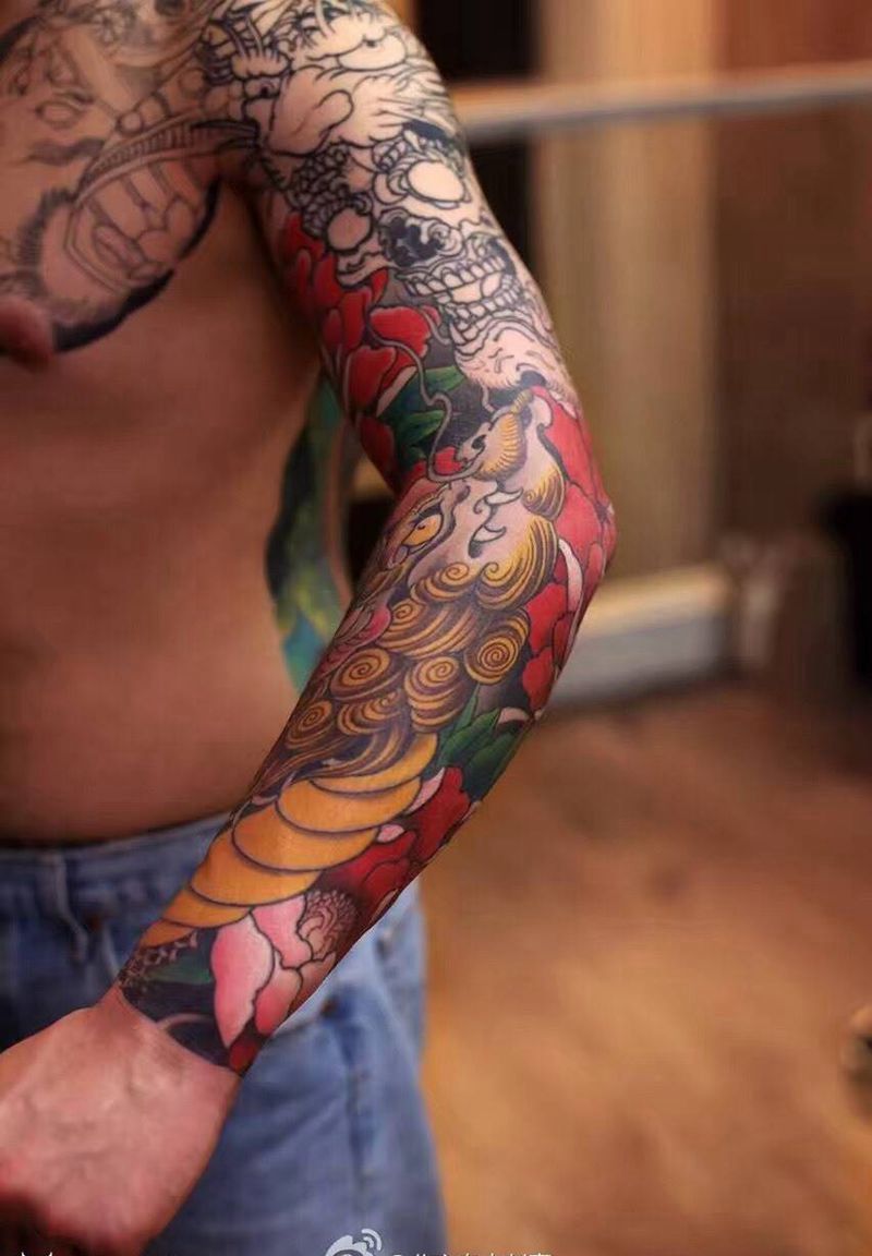 当前位置: 首页 >北京市纹身店-北京自由刺青纹身店纹身图案>大黑天花臂纹身 麒麟纹身图片_成品手臂传统习俗胸部宗教动物人物纹身图案