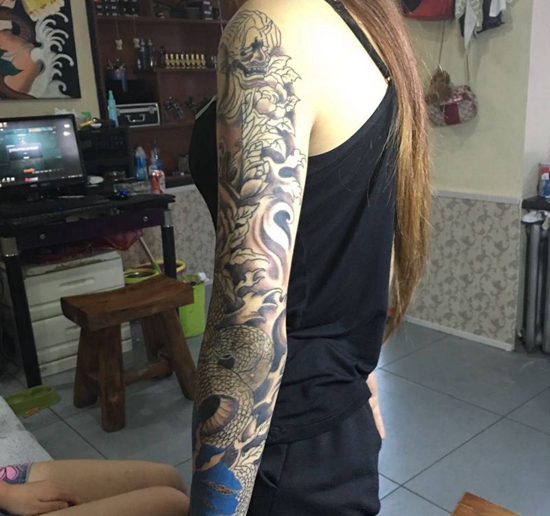 当前位置: 首页 >北京市纹身店-自由之翼纹身工作室纹身图案>花臂 没完成纹身图片_