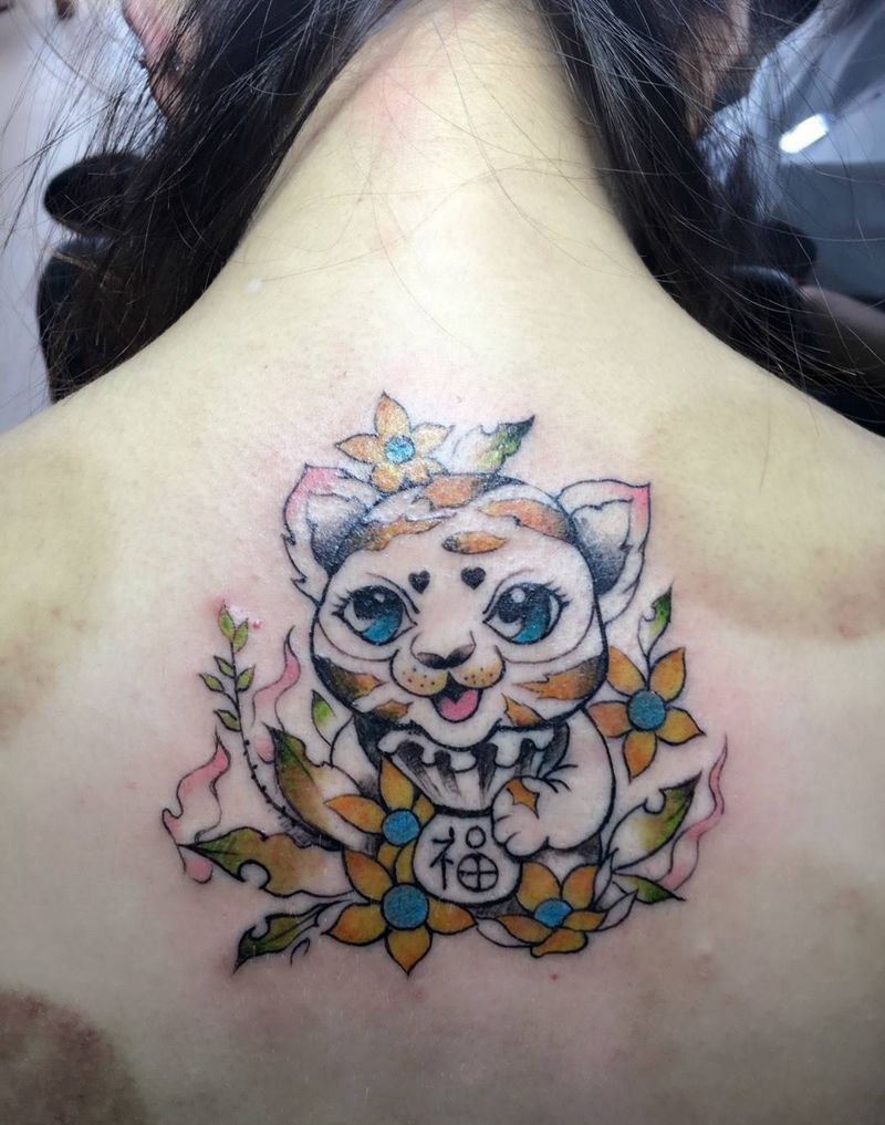 • T招财猫纹身图片