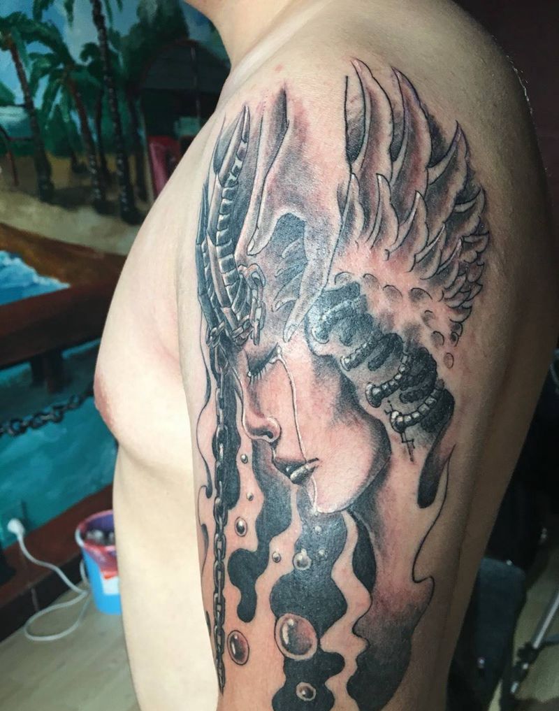 • 纹身吧推荐的披肩图腾半胛纹身图案作品展示