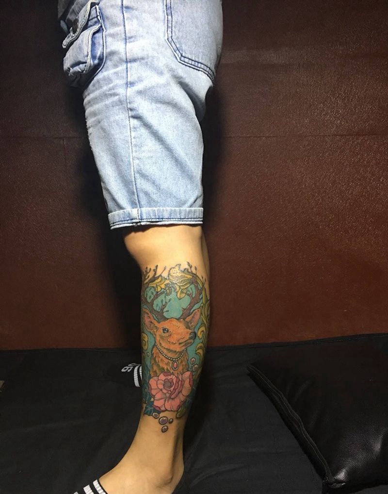 • T网红王老大花腿龙纹身图片_腿部新传统纹身图案