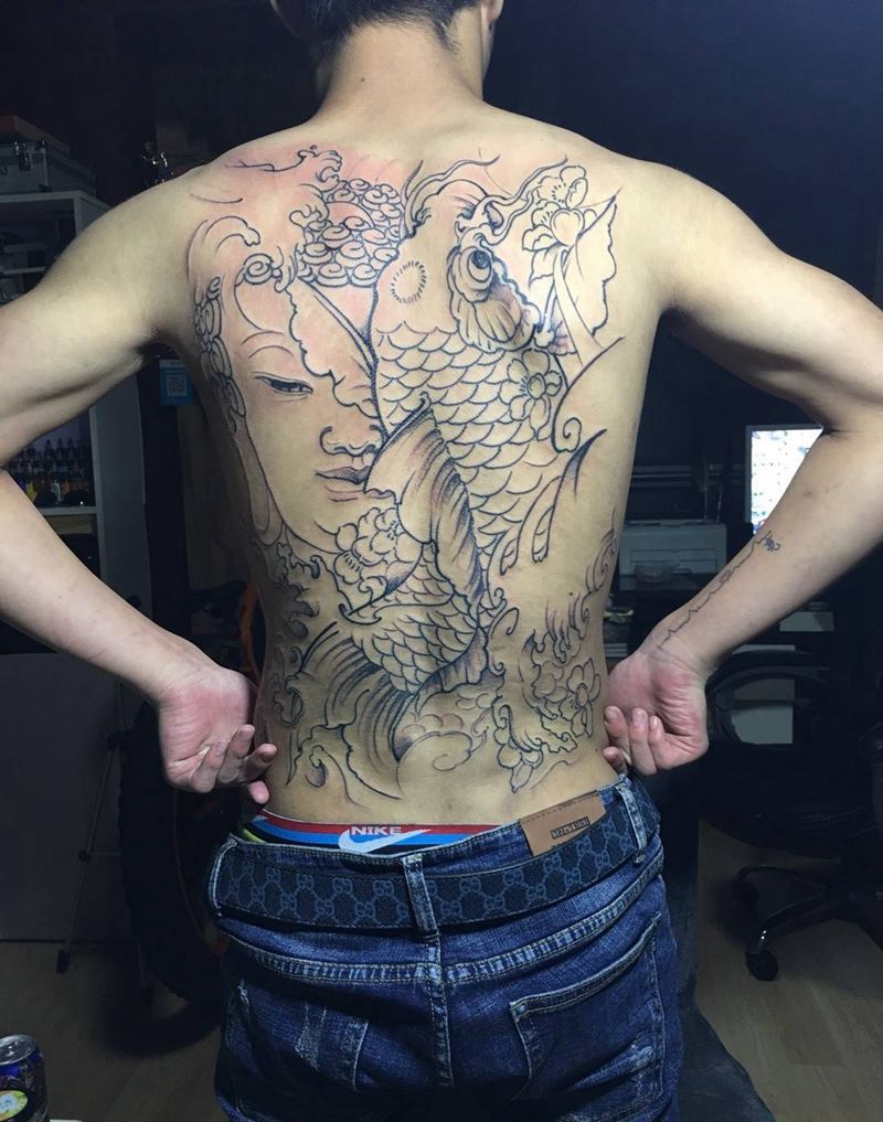 • T云龙九郎纹身图片_背部老传统云龙九郎纹身图案