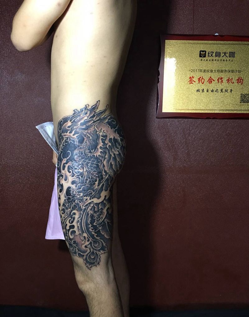 • T网红王老大花腿龙纹身图片_腿部新传统纹身图案