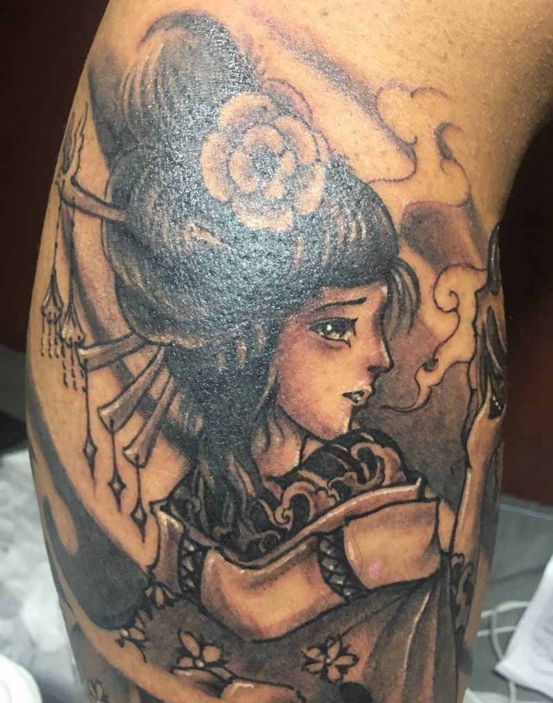 • T包小腿吹火男+阿多福纹身图片_腿部老传统新传统吹火男阿