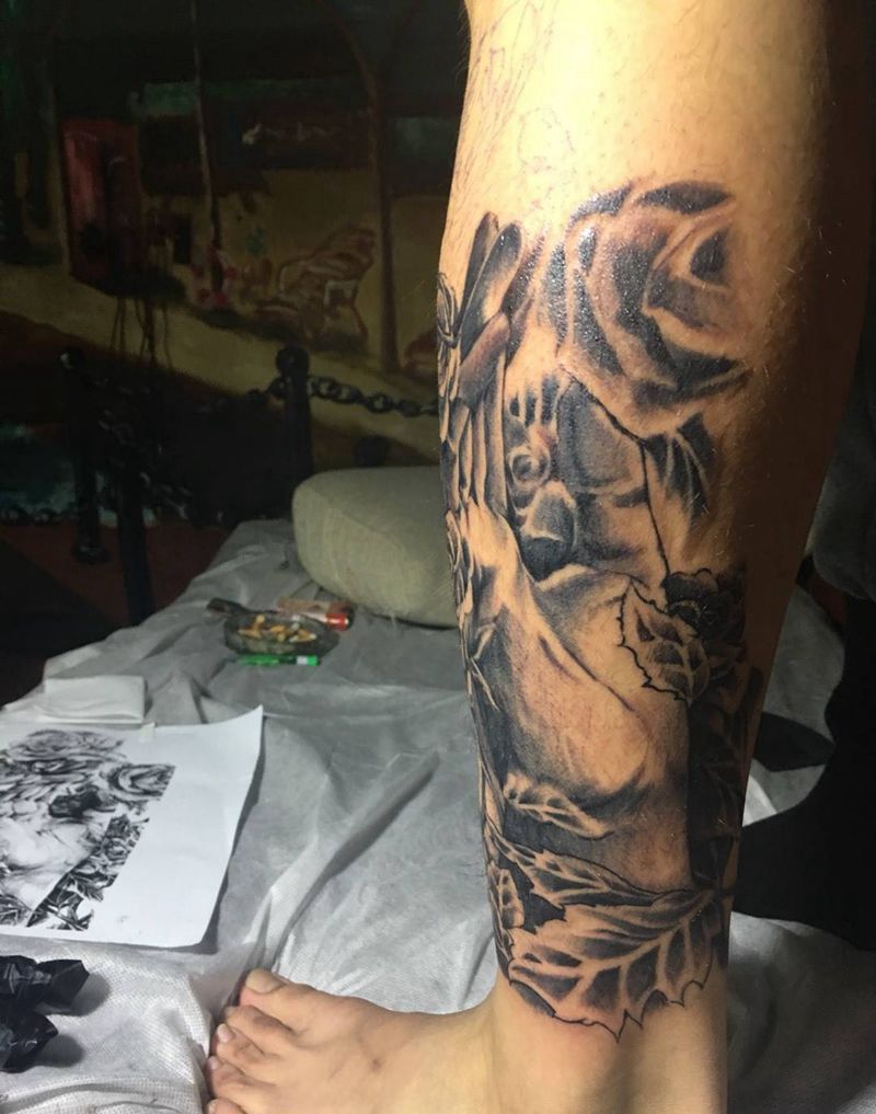 • T网红王老大花腿龙纹身图片_腿部新传统纹身图案