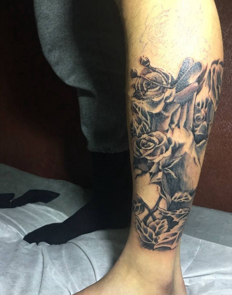 • T网红王老大花腿龙纹身图片_腿部新传统纹身图案