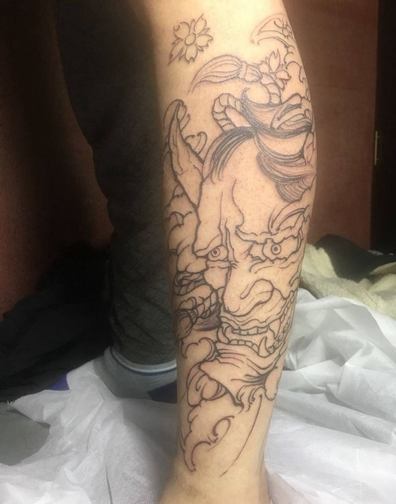 • T包小腿吹火男+阿多福纹身图片_腿部老传统新传统吹火男阿