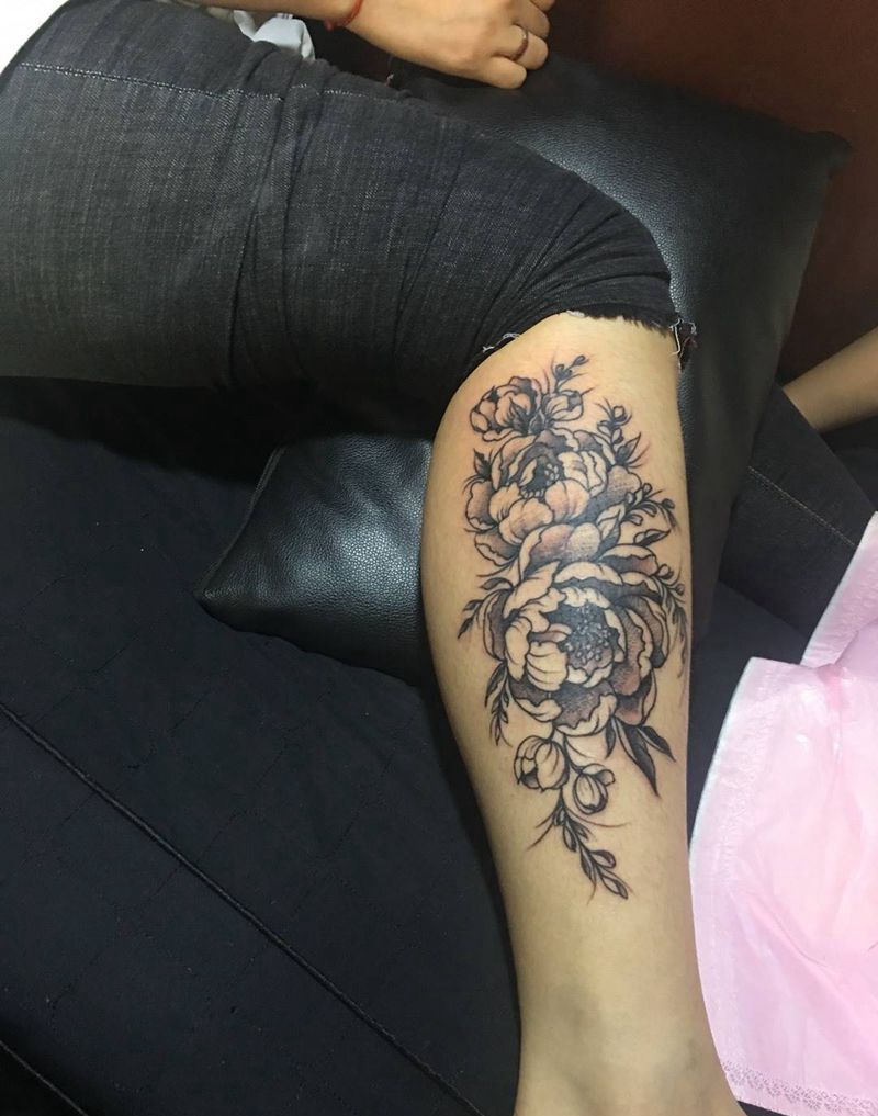 • T网红王老大花腿龙纹身图片_腿部新传统纹身图案