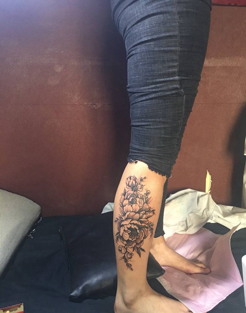 • T网红王老大花腿龙纹身图片_腿部新传统纹身图案