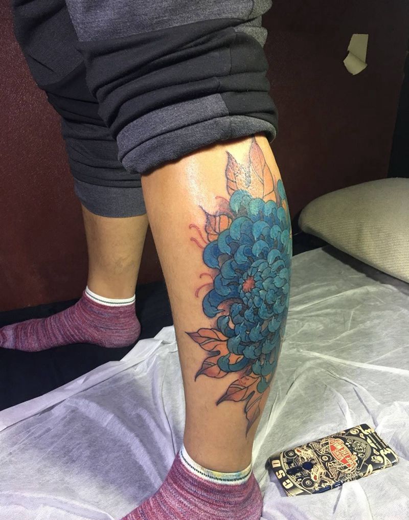 • T网红王老大花腿龙纹身图片_腿部新传统纹身图案