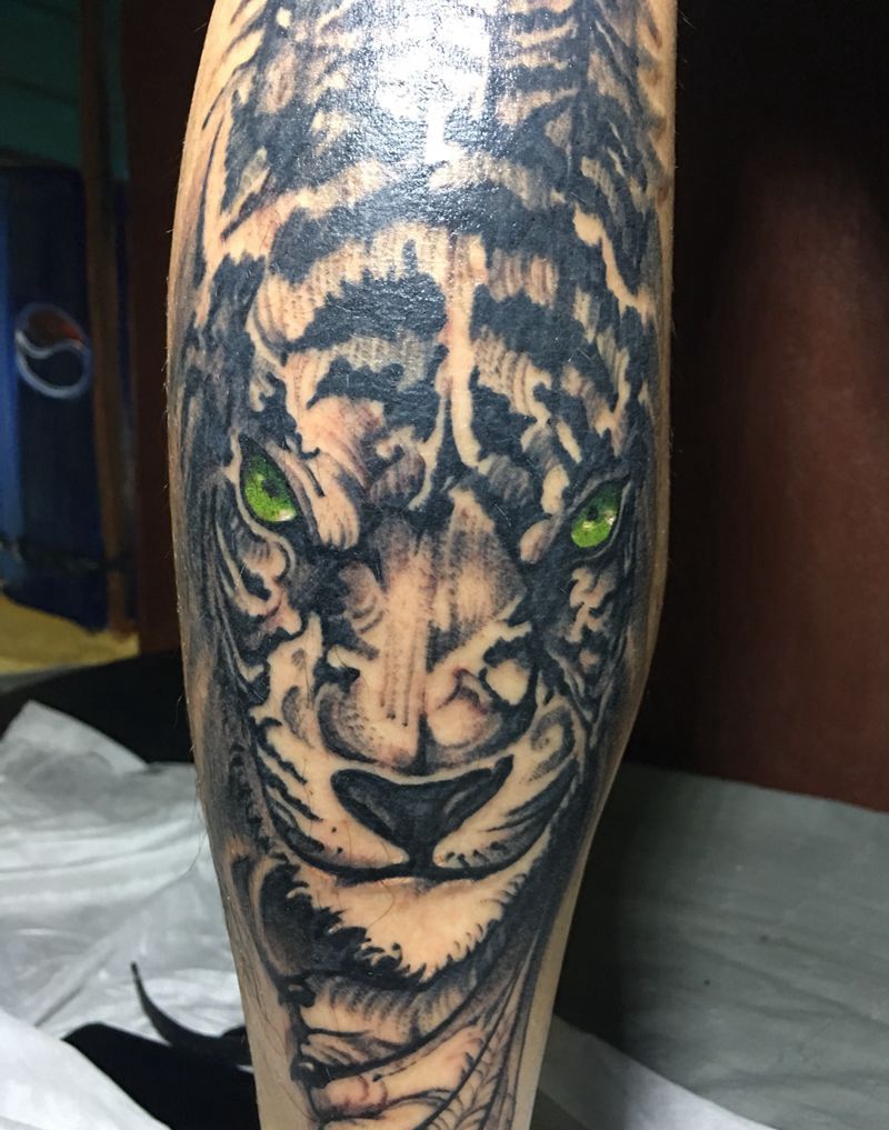 • T网红王老大花腿龙纹身图片_腿部新传统纹身图案