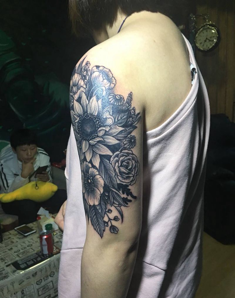 • 女性大花胸纹身_43张霸气漂亮的女性大花胸纹身图案作品