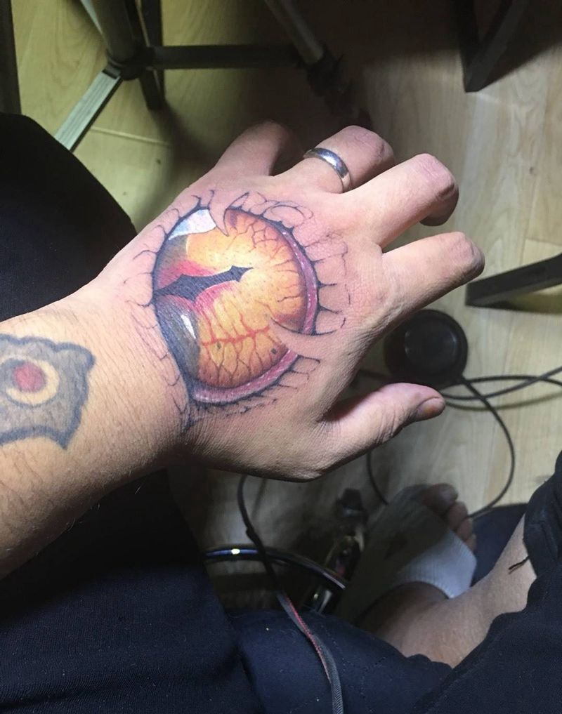 • 手背潮流时尚的玫瑰花眼睛纹身图案