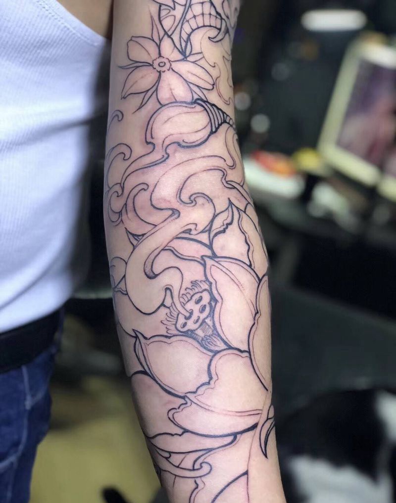 一组15张莲花纹身手