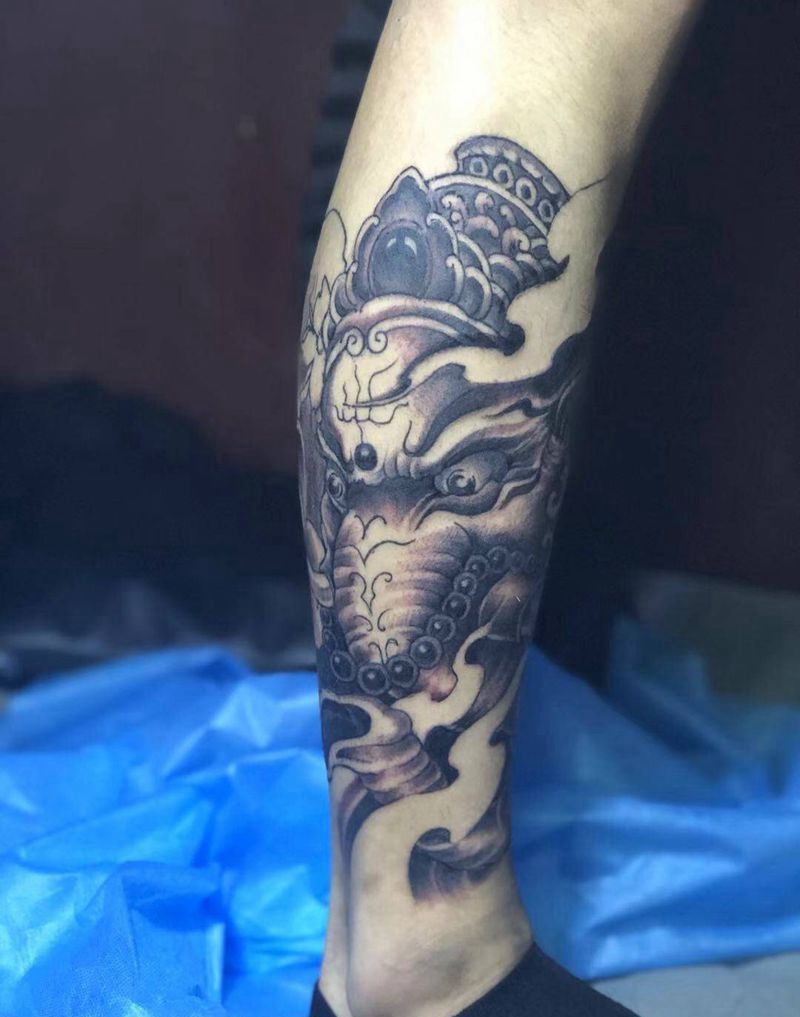 • T网红王老大花腿龙纹身图片_腿部新传统纹身图案