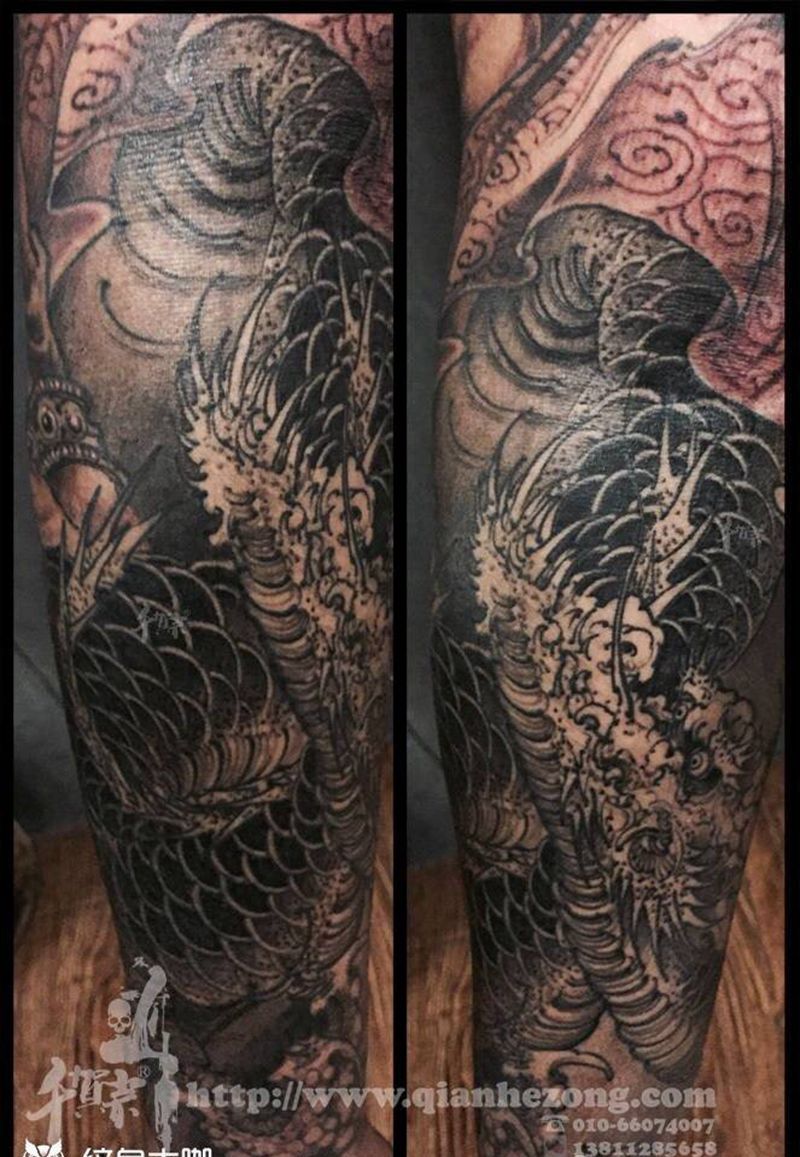 • T网红王老大花腿龙纹身图片_腿部新传统纹身图案