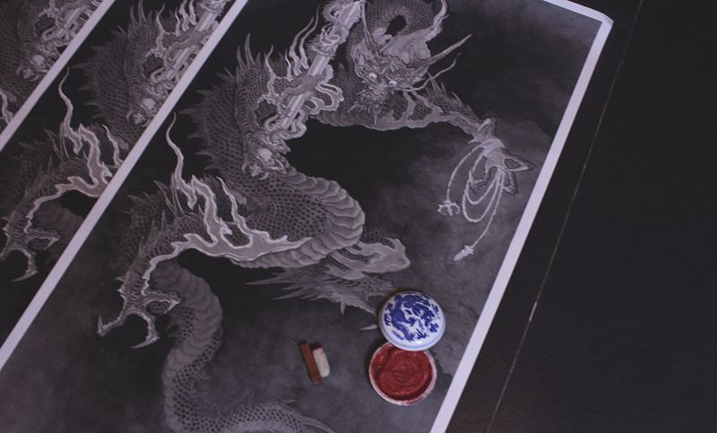 不动龍王出售纹身图片_背部胸部水墨新传统龙不动明王不动龍纹身图案