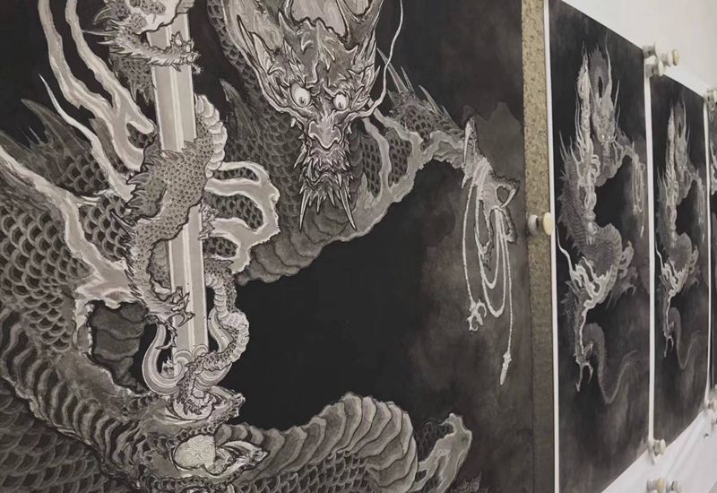 不动龍王出售纹身图片_背部胸部水墨新传统龙不动明王不动龍纹身图案