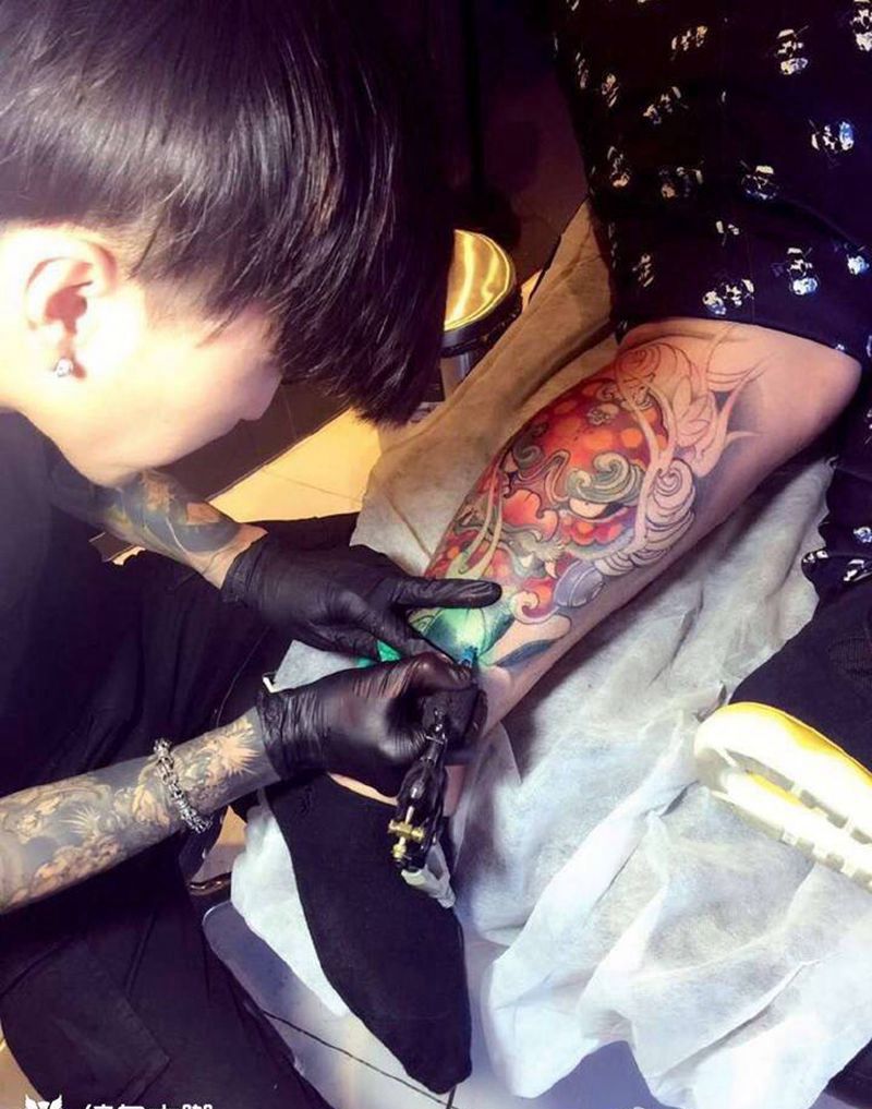 • T网红王老大花腿龙纹身图片_腿部新传统纹身图案
