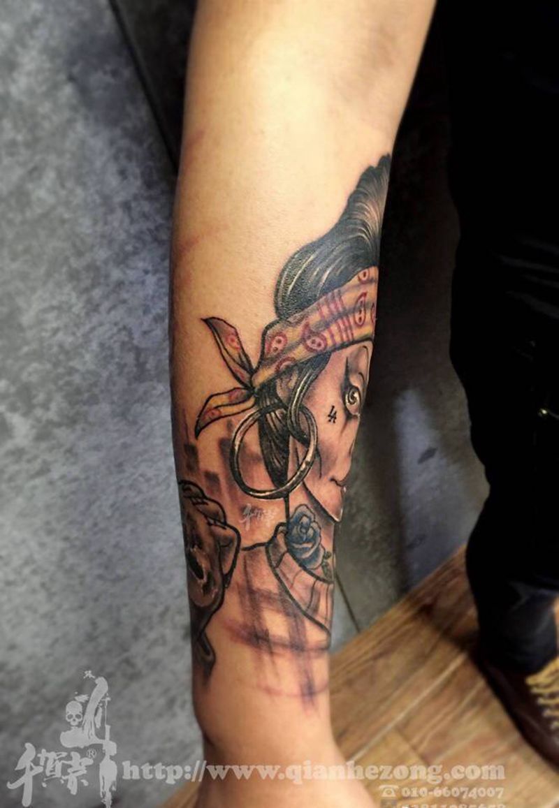 新派小图一个纹身图片_欧美清新写实肖像人物鬼神原创成品手臂纹身图案
