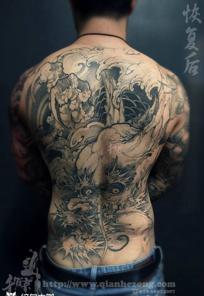 • T云龙九郎纹身图片_背部老传统云龙九郎纹身图案