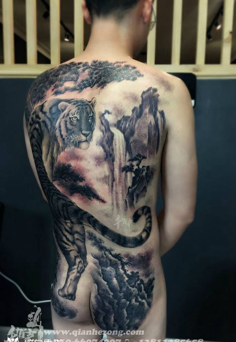 • 黑灰满背纹身图案