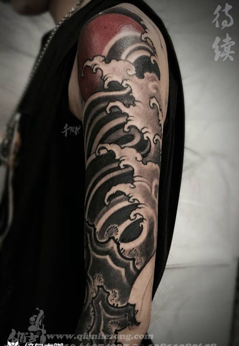 浪一个纹身图片_手臂成品手稿插画传统清新国画植物静物原创纹身图案