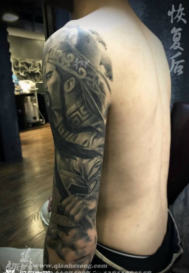 二爷纹身图片_传统清新国画写实成品手臂原创人物纹身图案