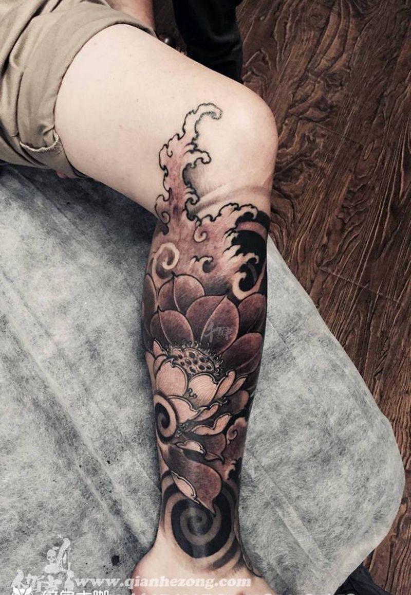 包小腿纹身图片_腿部传统欧美成品手稿插画贴纸动物植物原创纹身图案