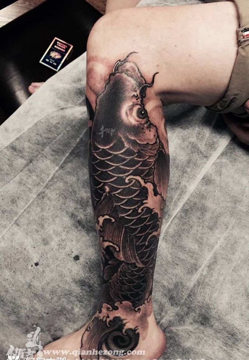 • T网红王老大花腿龙纹身图片_腿部新传统纹身图案