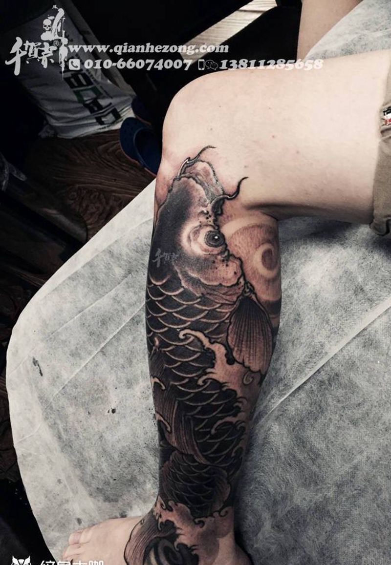 • T网红王老大花腿龙纹身图片_腿部新传统纹身图案