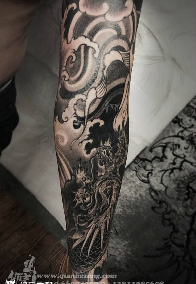 • T网红王老大花腿龙纹身图片_腿部新传统纹身图案