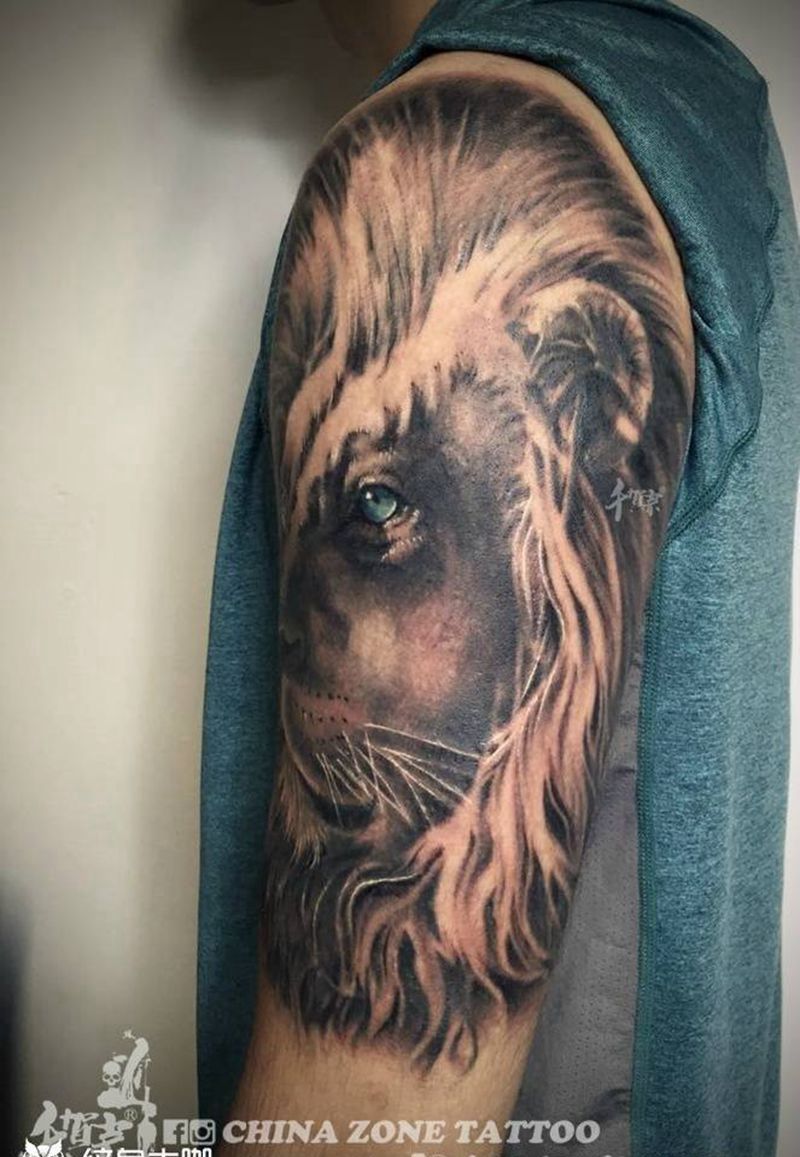 狮纹身图片_动物欧美肖像成品手臂原创清新写实纹身图案