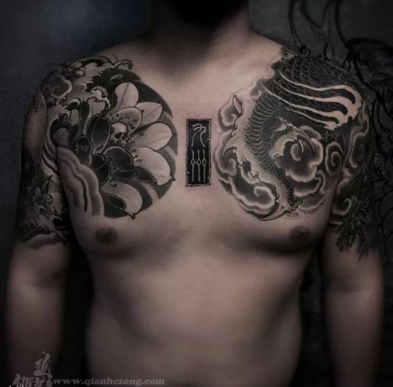 黑灰满背纹身图案
