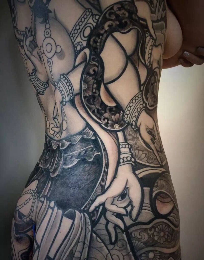 度母纹身图片_胸部臀部背部腿部成品写实传统国画人物原创纹身图案