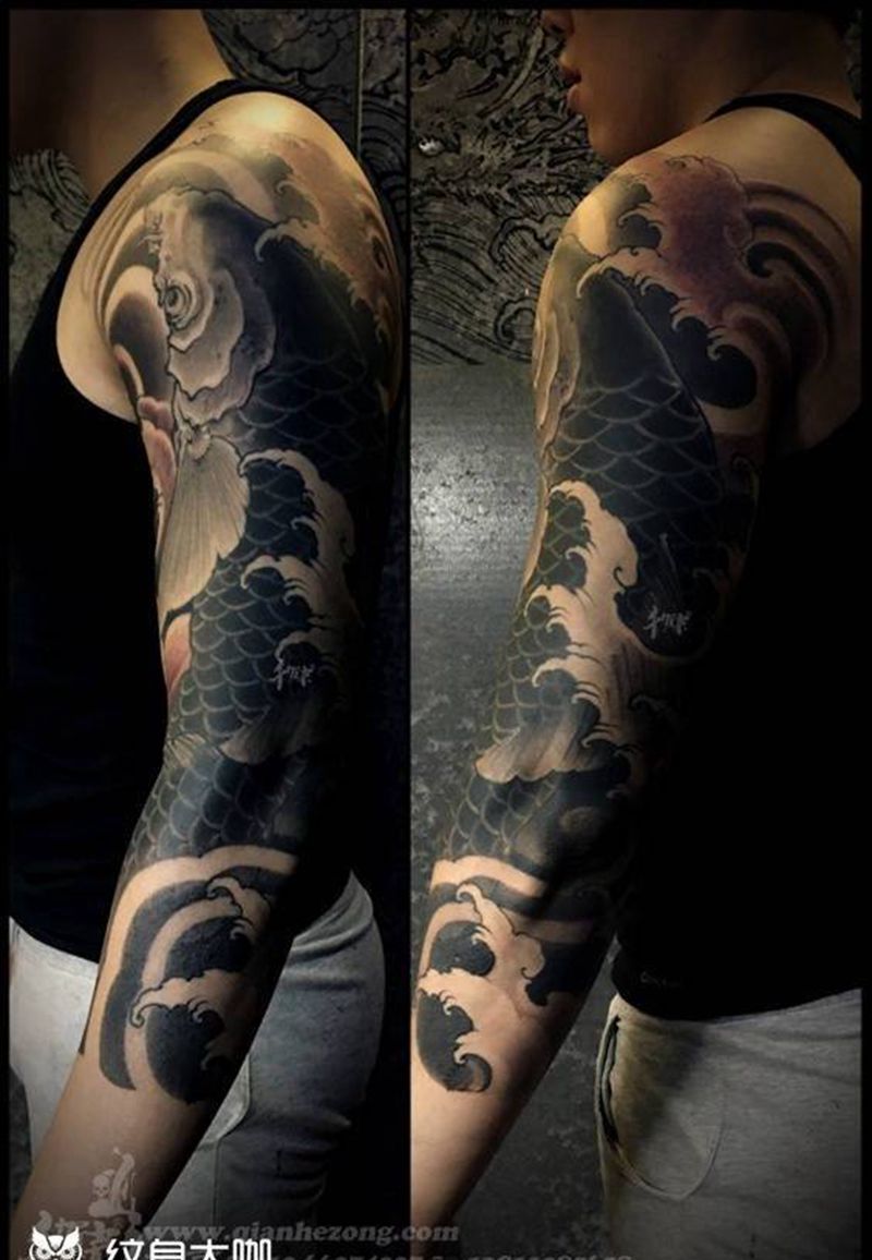 黑灰满背纹身图案