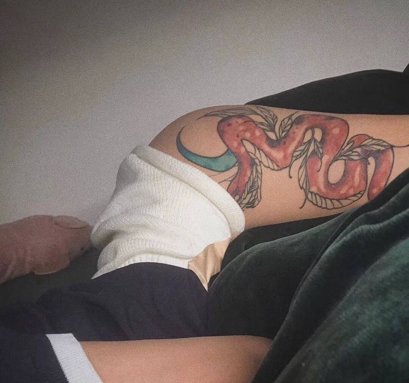 • T网红王老大花腿龙纹身图片_腿部新传统纹身图案