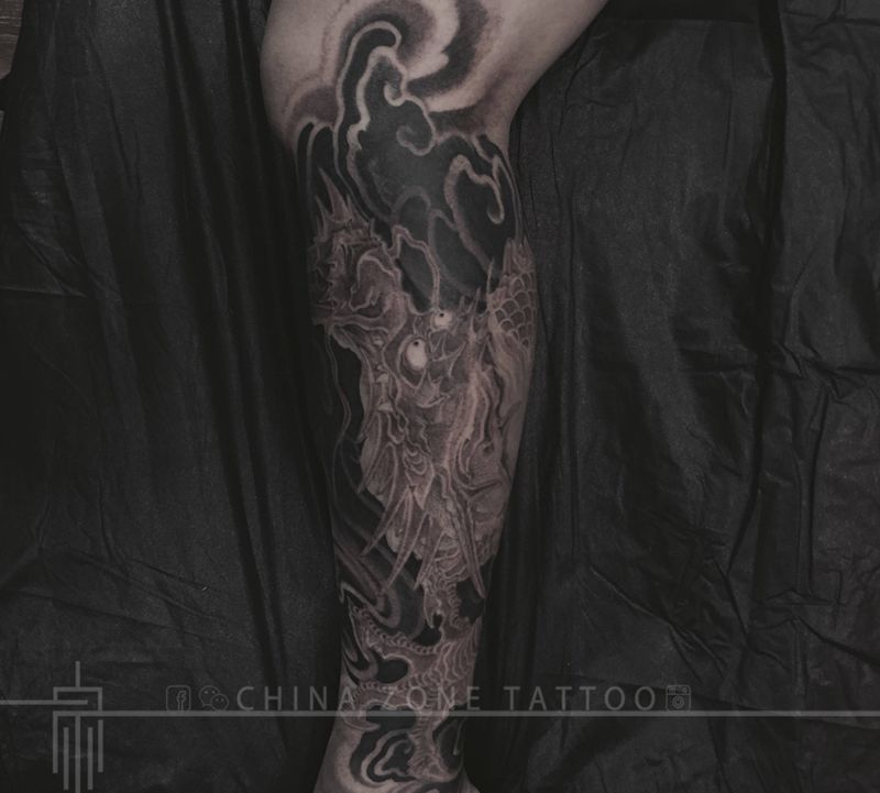 黑灰满背纹身图案